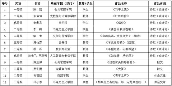 近日,河池市公布了学习贯彻习近平总书记“七一”重要讲话精神“党员心声大家谈”暨“四史”学习教育主题征文比赛获奖名单,我校获得优秀组织奖,有12个作品获奖,其中一等奖2项,二等奖4项,三等奖4项,优秀奖2项。