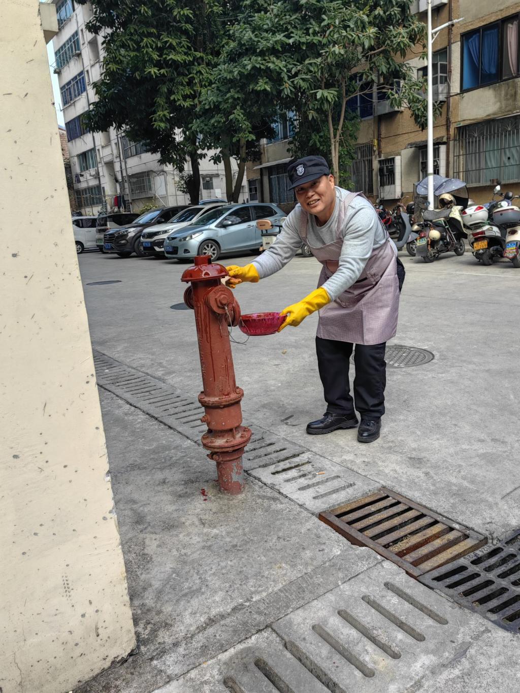 学校保安给校园室外消火栓刷防锈漆(2024-12-24)