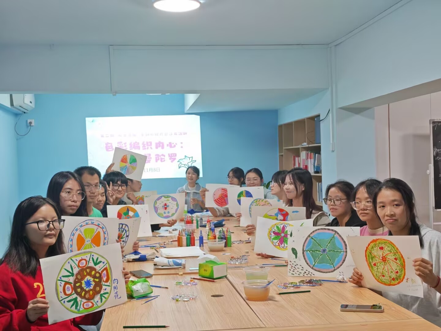 从11月1日的“呼吸锚心”到12月20日的“拾光致信”,每场沙龙都独具匠心。姚宁老师带领的呼吸减压沙龙,通过正念呼吸训练,让学生在一呼一吸间锚定当下,有效缓解了考前焦虑;梁慧老师的彩绘曼陀罗活动,让学生在色彩的创作中释放情绪,不少同学表示“涂色的过程像是在和自己的内心对话”;师丽艳老师的房树人绘画沙龙,以绘画为媒介,引导学生挖掘潜意识里的自我认知;谢恋情老师的瑜伽疗愈则将体式与呼吸结合,帮助学生舒缓身体疲惫,唤醒内在能量;李坤祐老师的OH卡探索活动,借助图卡启发学生表达内心想法,解开情绪困惑;最后一场“拾光致信”沙龙,王联芳老师带领大家给未来的自己写信,在文字中梳理成长、寄托期许,为系列活动画上温暖句号。