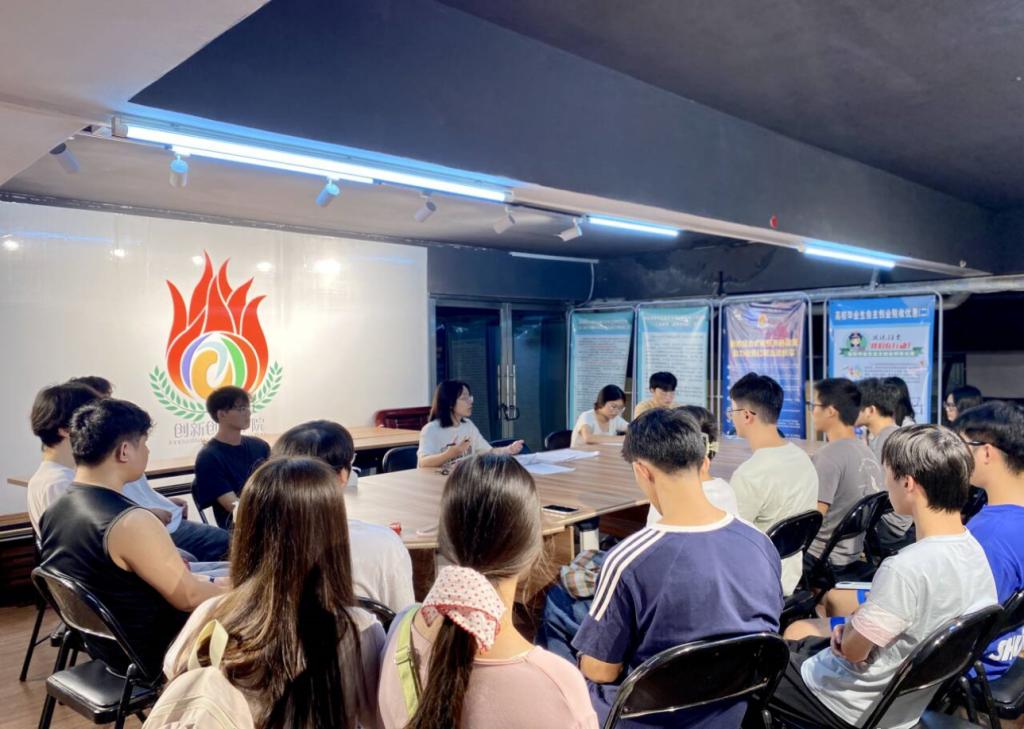 9月27日晚,我院开展2025年大学生众创空间新入驻项目交流会,创新创业学院教师及30名项目成员参会。