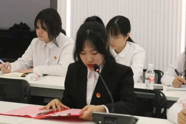 我校党员代表韦琳琳表示,在党的坚强领导下,中国共产主义青年团不忘初心、牢记使命。走在青年前列,组织引导一代又一代有志青年坚定信念、紧跟党走,为争取民族独立、人民解放和实现国家富强、人民幸福而贡献出自己的力量,谱写中华民族伟大复兴的青春乐章。