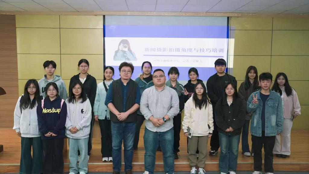 讲座尾声,全体人员合影留念,定格学习时光。此次培训深耕理论与实战融合,有效夯实学子新闻摄影与写作基础,为他们今后用镜头讲好故事、用文字传好声音筑牢根基。
