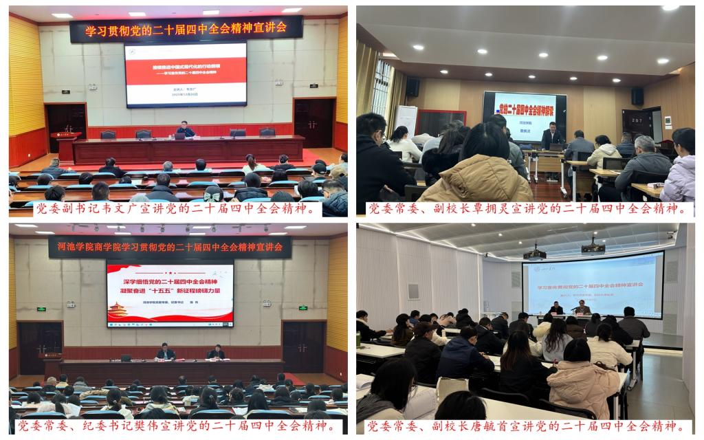 根据学校党委的统一部署,校领导、党委常委分别深入所联系职能部门及二级学院开展党的二十届四中全会精神的宣讲。(作者:吴海娇 拍摄:肖佳、吴海娇、各二级学院 校对:韦文韬 审核:杨玉珠)