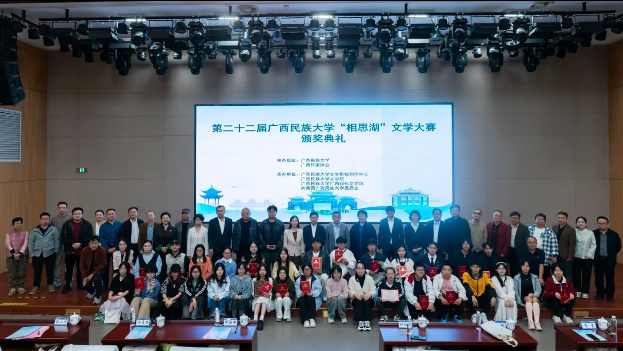 11月2日上午,第二十二届广西民族大学“相思湖”文学大赛颁奖典礼在广西民族大学相思湖校区文化研习基地举行。第二十二届“相思湖”文学大赛经半年征集,累计收到稿件3000余篇(份),经过四轮评审后,最终产生一等奖2篇,二等奖6篇,三等奖15篇和优秀奖20篇,共计43篇获奖作品。