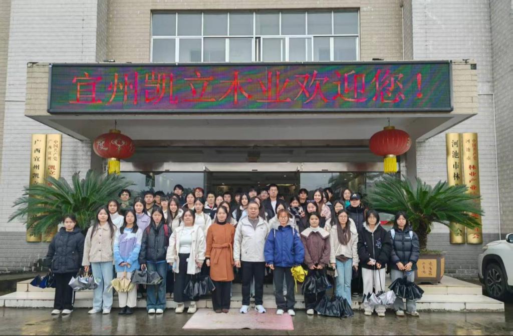 12月24日上午9时,商学院市场营销专业2024级和2025级学生在刘蕙荟老师和莫凯老师的带领下,前往广西宜州凯立木业有限公司开展实践教学活动。本次参观以《管理学》和《市场营销学》课程为依托,通过实地走访与深度交流,让学生将课堂理论与企业经营实践相结合,深化对现代企业运营管理的理解。