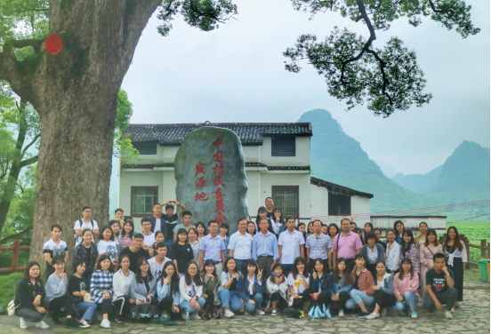 学院利用村民自治特色资源开展实践教学和科学研究,依托宜州村民自治发源地的资源优势,开展农村基层治理、乡风文明、村落文化、脱贫攻坚、乡村振兴等研究。成立有“民族地区基层民主与法治建设研究团队”,通过加强和基层政府、村庄合作,共建社会实践基地。先后邀请了“改革先锋”韦焕能作报告,组织了学生深入村民自治发源地合寨村、村民自治深化地木寨村开展实践教学。团队通过挖掘典型经验和治理新模式,探索、打磨可推广、可复制的河池经验,把科研成果转化为实践教学内容。