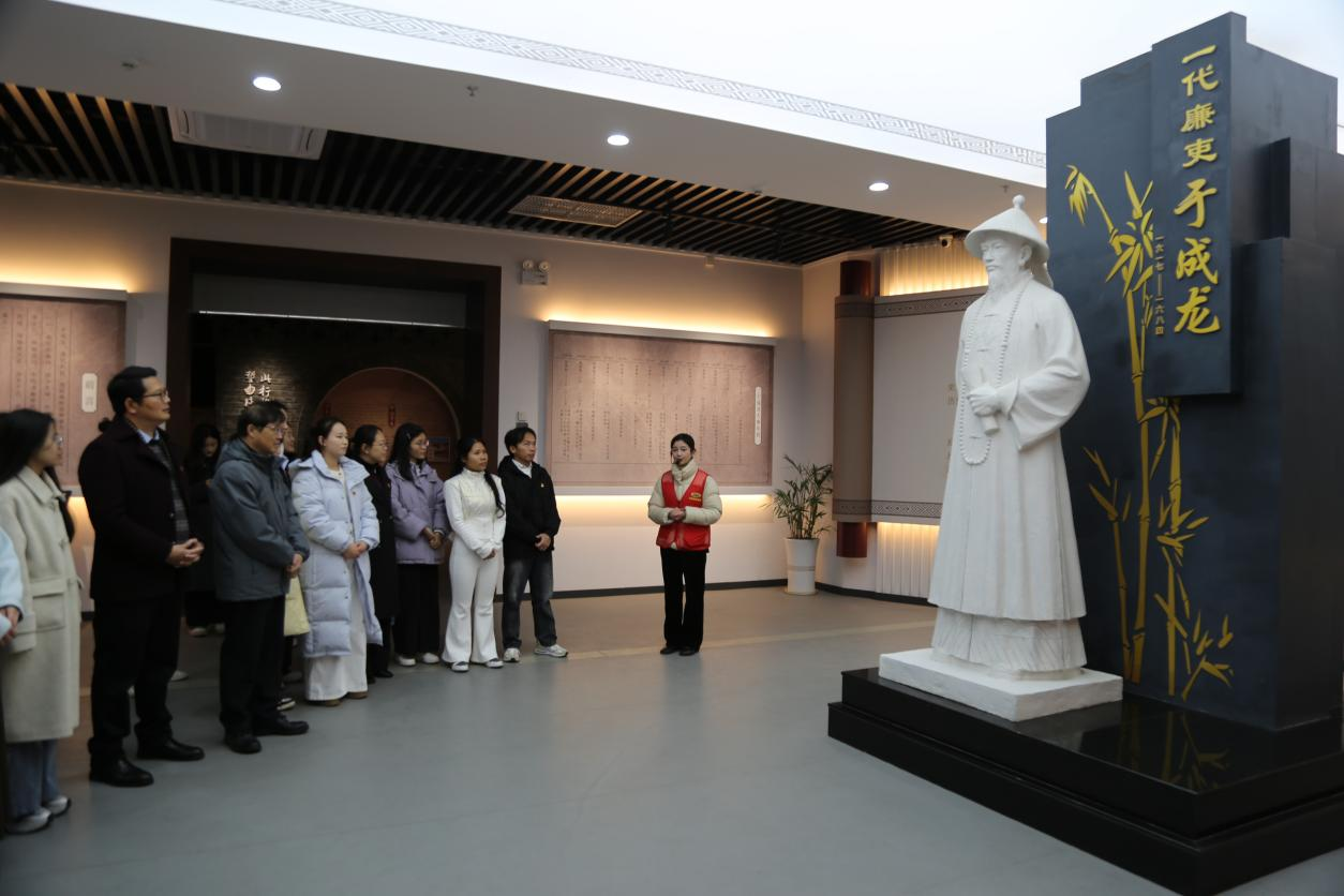 商学院党委于2025年12月24日下午组织师生党员前往广西罗城仫佬族自治县于成龙廉政文化展示馆,开展现场教学活动。此次活动通过实地参观、情景教学、交流研讨的形式,将廉政文化与作风建设深度融合。