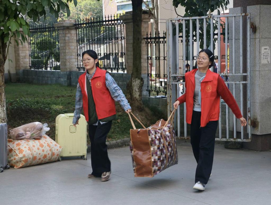 为确保返校流程高效有序,学院前期全面统计实习生返校时间、交通方式等关键信息,制定了详细的工作方案,明确各环节职责与分工。返校当日,志愿者提前到达指定岗位,热情等候并积极协助学生搬运行李,提供必要的引导与服务。