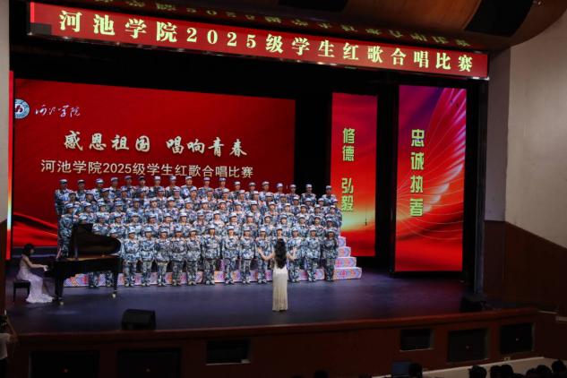 金秋传喜讯,歌声献华章。9月28日,河池学院“青春心向党,奋进新征程”2025级新生红歌合唱比赛在艺术楼表演厅举行,数理学院新生代表队凭借出色的表现,荣获一等奖。