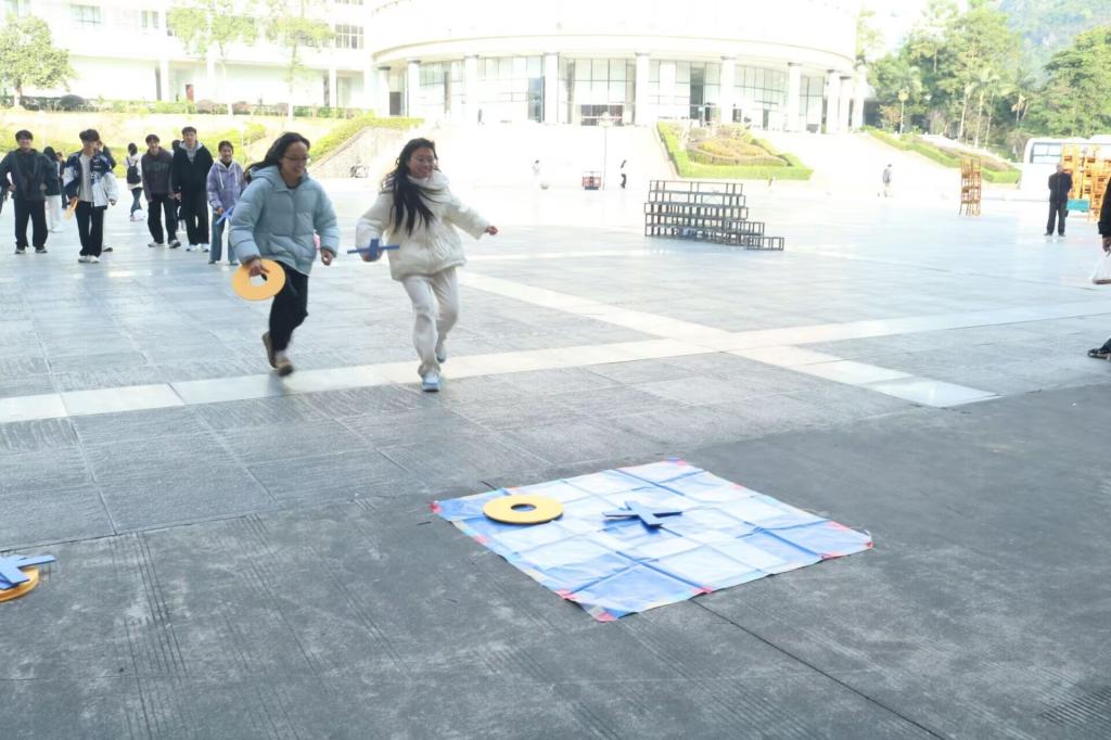 随后的互动游戏环节将现场气氛推向高潮。参会人员分组参与了三字棋、跳绳、踩气球等趣味游戏,这些活动不仅锻炼了团队协作能力,还巧妙融入了数理学科元素,增强了活动的专业性与趣味性,也在轻松的氛围中促进了各班干部之间的交流与联系。