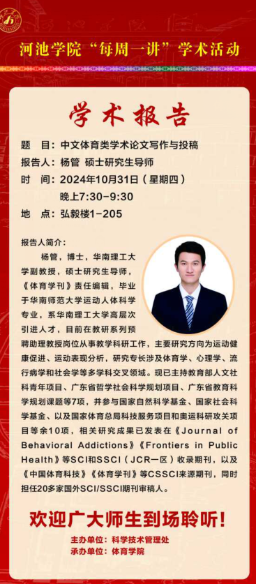 报告人:杨管博士 华南理工大学副教授,硕士研究生导师