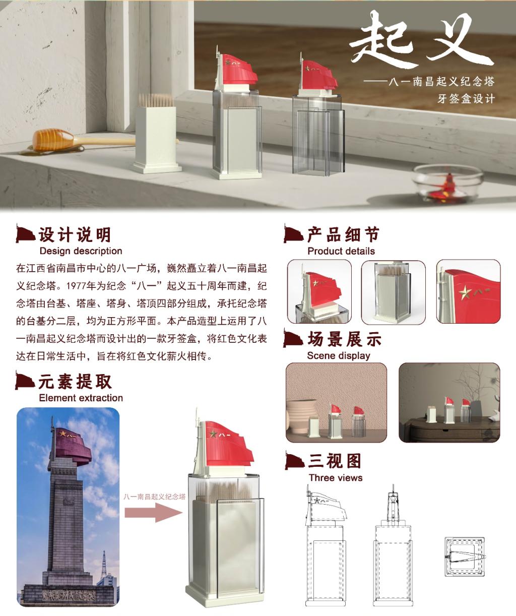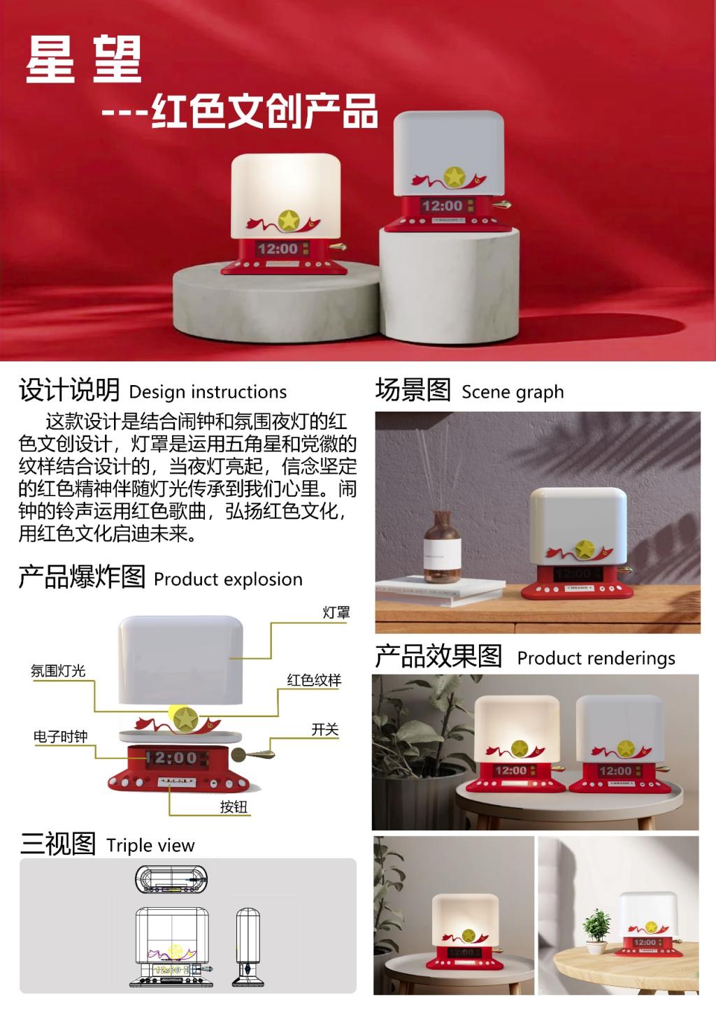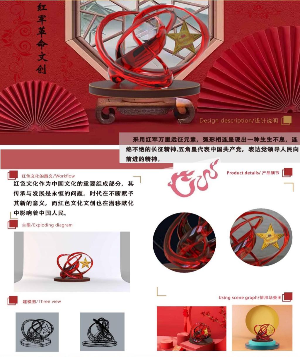 在课程思政建设大背景下,注重产品设计专业应用型人才培养,在文化创意设计课程中提炼红色文化的核心价值观和理念,引导学生树立正确的价值观和职业道德。通过设计实践,增强学生的文化自信和爱国情怀,提高设计作品的内涵和品质,提升学生的文化素养和职业能力,培养出具备社会主义核心价值观的产品设计专业人才。