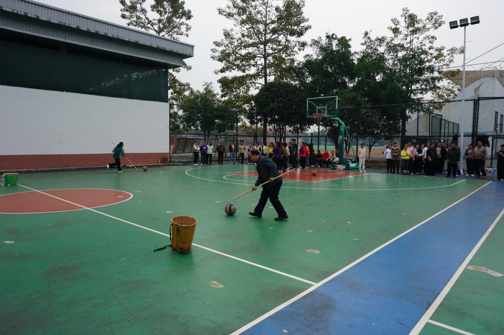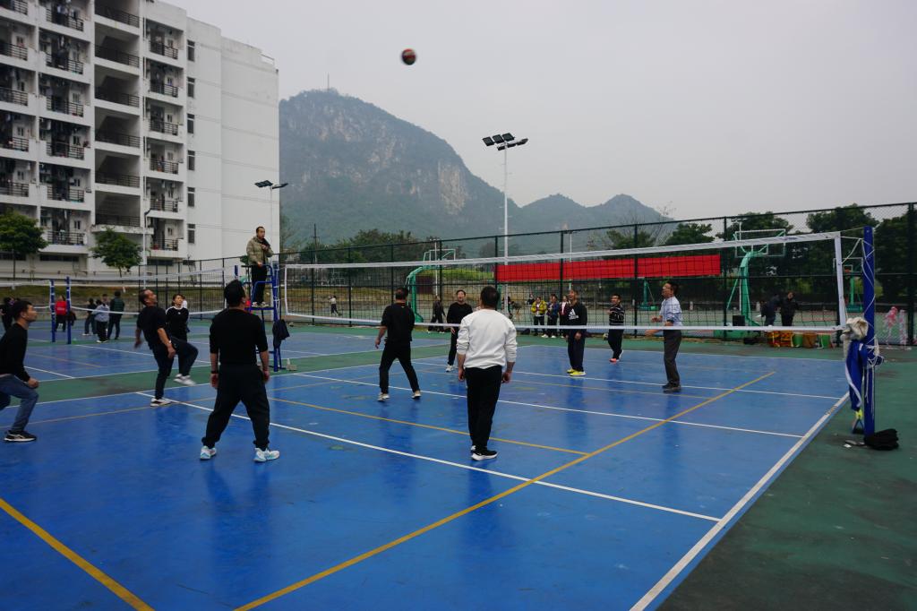 运动会以“凝聚团队力量,丰富文体生活,提振干事精气神”为宗旨,设集体与个人项目,兼顾竞技性、趣味性与参与感,适配不同教职工需求。气排球场上队员默契配合,传球扣杀流畅;定点投篮区,篮球入网瞬间引爆欢呼。