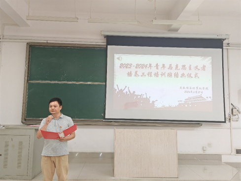 2024年6月21日晚,我院于弘毅楼2-501举行青年马克思主义培训工程培训班结业仪式,学院党委书记钟友坤、副院长(主持行政工作)梁志勋、党委副书记黎军、学院团委书记魏志荣、辅导员蓝消蔓及青马班全体成员参加了结业仪式。