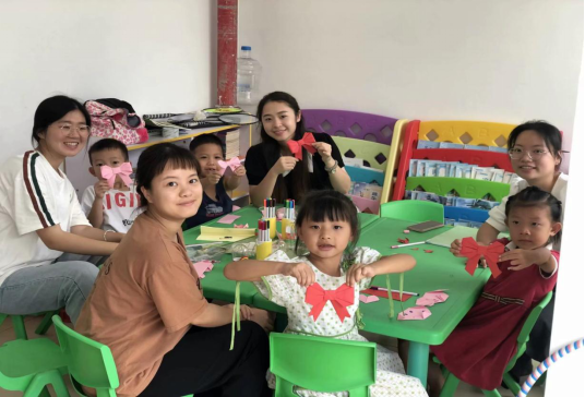 图为支教社会实践团志愿者幼儿组手工课合影