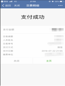 (1)支付完成后,显示如下图所示的缴费成功页面,如果看到待支付金额减少说明交费成功。缴费成功后,请自行截图保存。