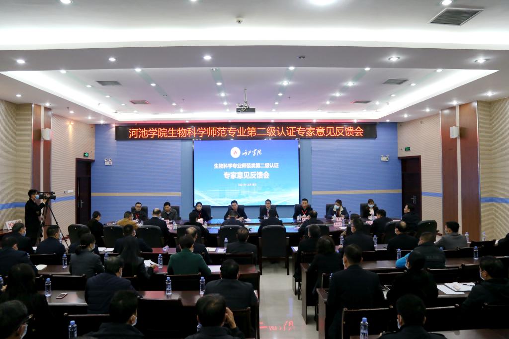 邓洪平代表认证专家组反馈考查意见。专家组认为,河池学院生物科学(师范)专业办学历史较悠久,积淀较深厚,办学目标定位准确。学校拥有的科研教学平台、大学生校外实践教育基地以及教育实习基地,为生物科学(师范)专业的建设与发展提供了有力保障。采用“红色铸魂”工程,培养学生良好的师德和深厚的乡土教育情怀,为广西基层的教育事业输送了一批“下得去、留得住、服务好”的中学生物学师资,得到用人单位高度评价,社会声誉好。