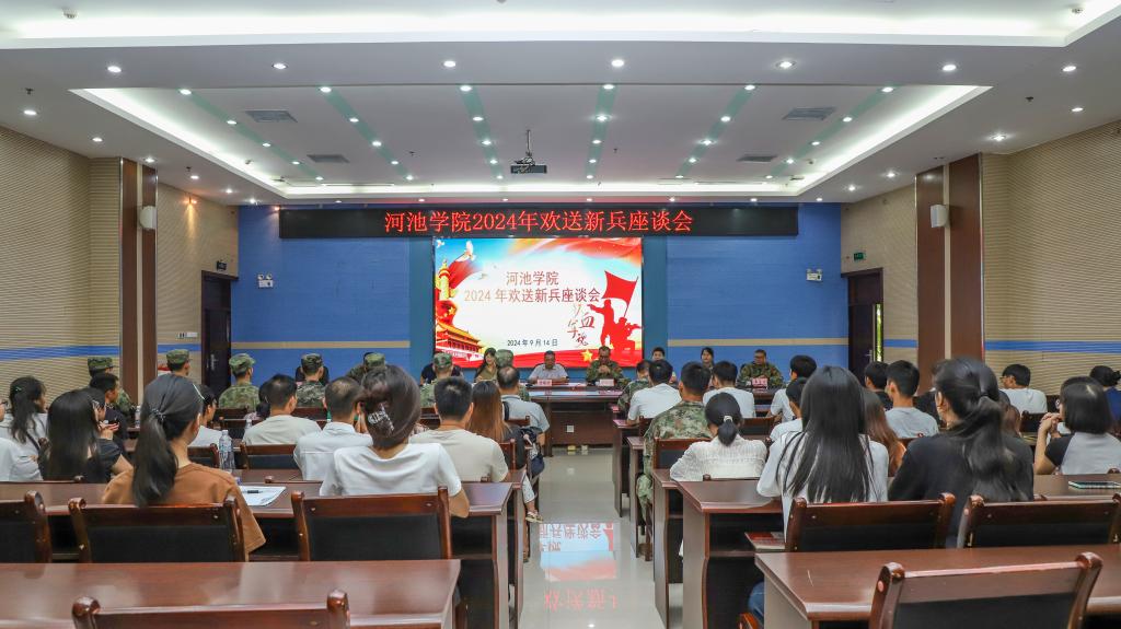 9月14日,我校在图书馆122会议室召开2024年欢送新兵座谈会,欢送6名学子踏上征程、奔赴军营。学校党委常委、副校长唐毓首出席座谈会,学校相关部门、二级学院负责人,入伍新兵、新兵家长及在校生代表参加座谈会。