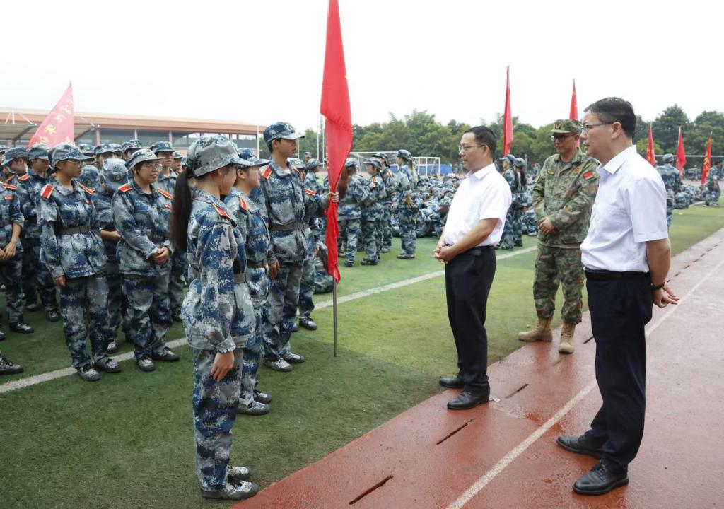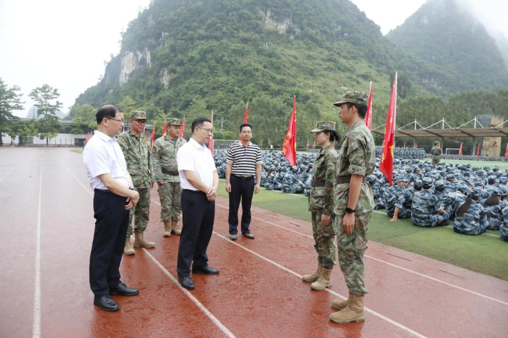 据了解,学校今年把军训学生编成1个军训团,下辖3个军训营,51个军训连。聘请51名带训教官,其中30名教官为我校退伍复学的同学。他们曾在西藏、海南等全国不同的地方当兵,他们或扎足雪域高原或潜伏热带雨林,抑或牧海耕浪,在艰苦的自然条件中锤炼自己的军人本色和政治品格,创造了军人的荣光。甘毅与他们交谈,了解他们在部队服役期间的训练、学习、生活经历和入伍前后在各方面的转变及收获。甘毅表示,退伍复学的同学们携笔从戎,为国防建设作出贡献,是学校的骄傲。要继续发扬在部队养成的优良作风、优秀品质和奋斗精神,并通过军训传递给新生,大家共同携手推进“纪律严明、氛围和谐、高质高效、自强卓越”的校园治理理念,为学校赶超式高质量发展贡献智慧与力量。(作者:韦文韬 拍摄:韦文韬 校对:吴海娇 审核:杨玉珠)