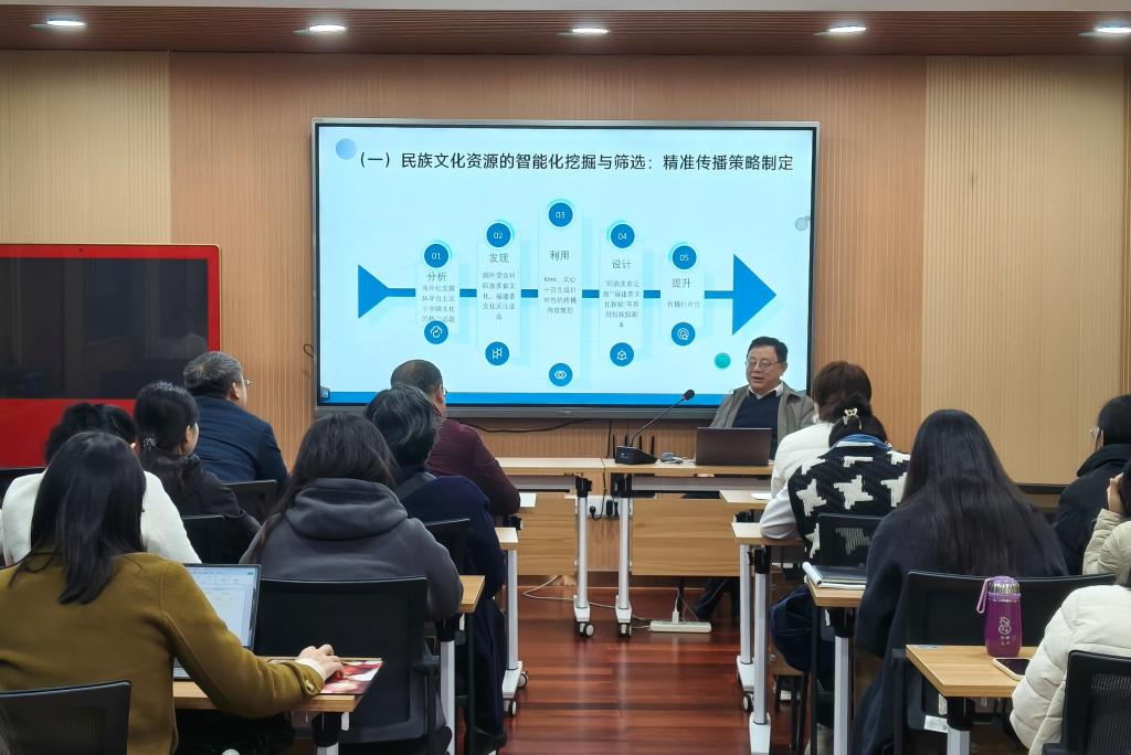12月24日,广西民族大学张旭教授应邀我校外国语学院、国际教育学院师生带来题为“AI赋能民族文化翻译与传播”的专题学术讲座,内容涵盖“AI技术赋能地方翻译能力建设”“AI技能提升地方文化国际传播效能”“AI助力民族文化融入国家对外话语体系”三大核心板块,讲座由外国语学院院长韦丽秋主持。