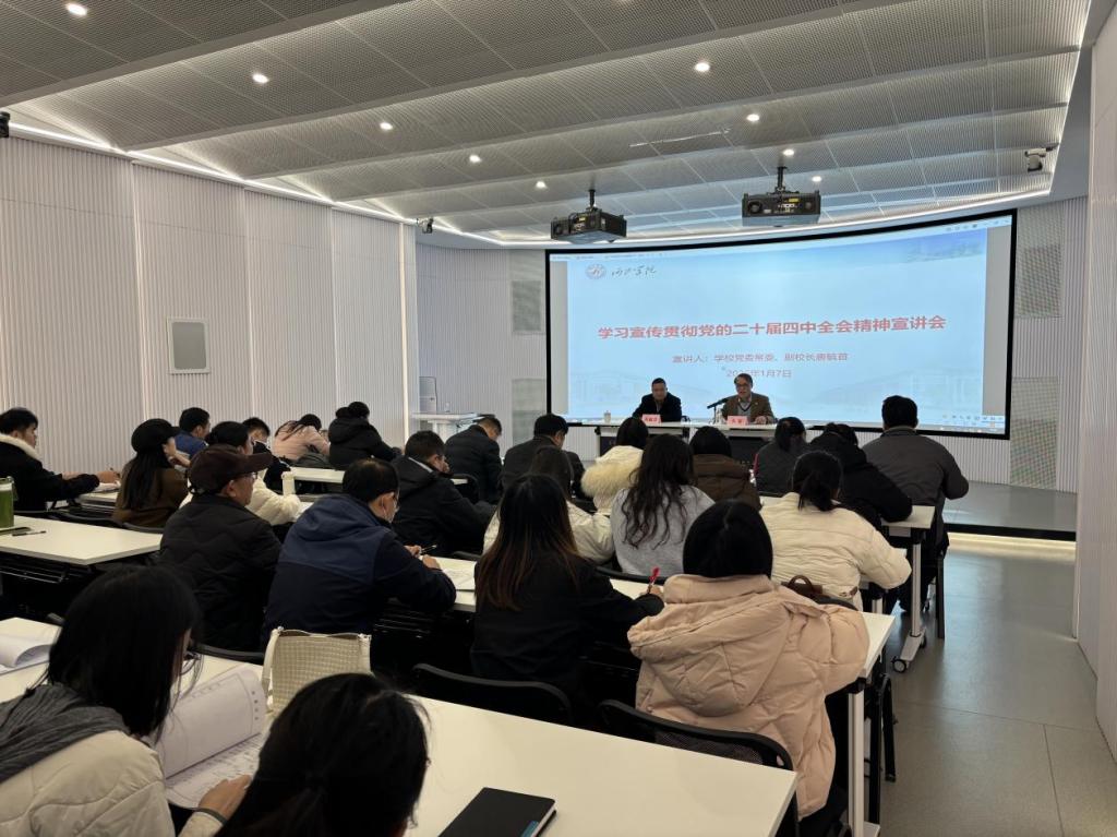 1月7日上午,学校党委常委、副校长唐毓首为我院师生作学习宣传贯彻党的二十届四中全会精神宣讲报告。学院全体教职工、学生党员代表参加宣讲会,宣讲会由学院党委书记韦福主持。