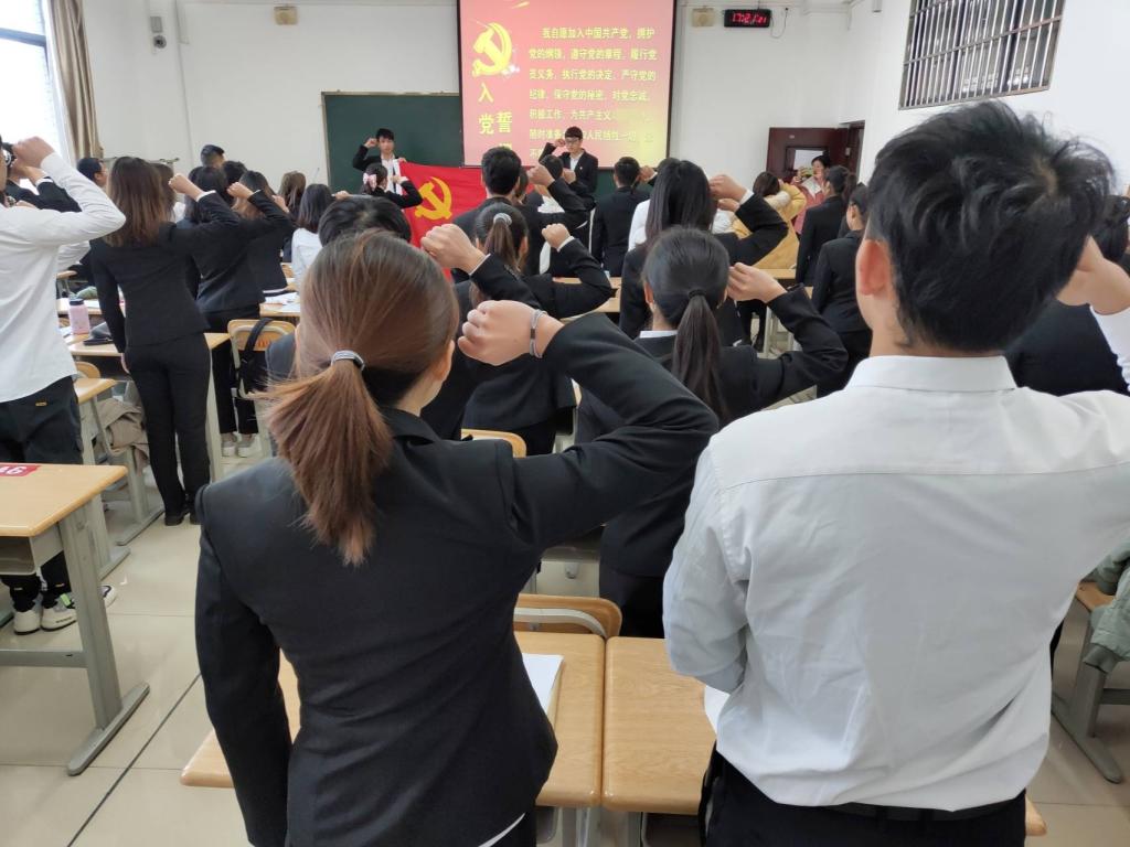 宣誓前,学生第二党支部副书记罗曼同志带领与会正式党员为新接收的预备党员佩戴党员党徽。在学生第一党支部书记姚宁同志的领誓下,蓝梦婷等20名新党员进行了庄严的入党宣誓,与会正式党员重温了入党誓词。新发展的党员们怀着无比激动的心情,面向鲜红的党旗,庄严宣誓,洪亮、激昂的宣誓声不绝于耳,表达对党的忠诚和为共产主义事业奋斗终生的决心。预备党员代表蓝梦婷作了发言,表示会在今后的工作学习和生活中将继续加强政治理论学习,时刻践行全心全意为人民服务的根本宗旨,不忘初心,用实际行动和表现来践行自己的诺言。