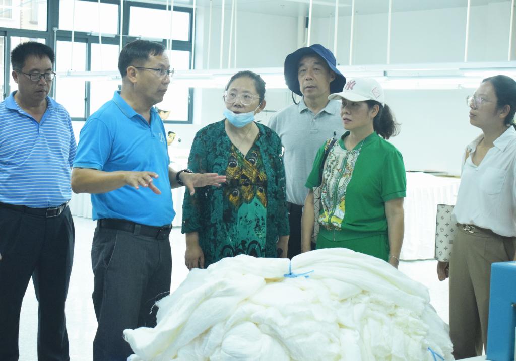 实地考察调研环节,与会专家学者分别前往刘三姐蚕桑高效生态产业核心示范区、广西林胜堂蚕具有限公司、广西嘉联丝绸股份有限公司等企业进行考察调研。在调研过程中,专家们走入桑田观察桑树、桑叶的生长情况,走进蚕桑生产车间了解蚕桑产业发展历史、产蚕机器、蚕蛹孵化等情况,切实了解蚕桑产业的生长、生产和发展情况,打通河池蚕桑产业向高质量发展的“最后一公里”。