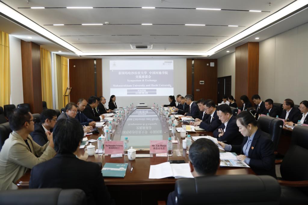 President Prayook Srivilai attached great importance to this visit and specially organized an 11-member delegation to visit our university. The delegation included assistant presidents in charge of research, health, and physical education, deans of the Faculty of Business, Faculty of Technology, Faculty of Informatics, School of Humanities and Social Sciences, School of Science, and Confucius Institute, as well as leaders from functional departments such as the Academic Affairs Service Division and Development Planning Division. President Prayook Srivilai expressed his gratitude for the warm reception from our university and showed great satisfaction with the well-arranged itinerary. He introduced the disciplinary strengths of Mahasarakham University in fields such as agricultural sciences, biotechnology, education, and humanities. He noted that Hechi University has achieved remarkable results in sericulture industry research and technical services, and there is broad potential for cooperation between the two institutions in this field. He expressed the hope that this visit would promote the establishment of long-term collaboration mechanisms between the two universities in talent cultivation, scientific research, and industry services.