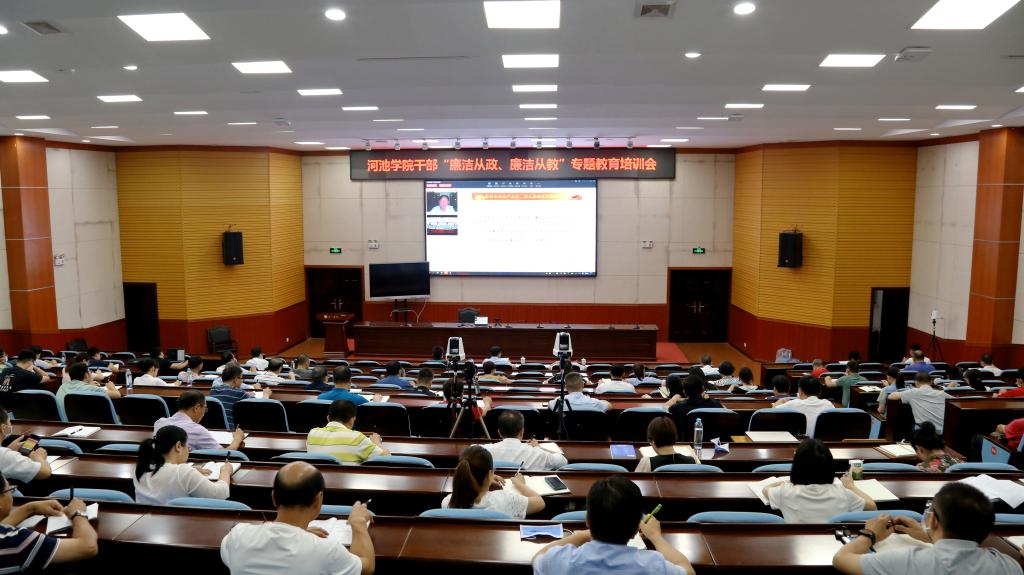 9月28日上午,我校干部“廉洁从政、廉洁从教”专题教育培训会在弘毅楼1-205报告厅举行,全体中层干部、中青年干部、党务工作者、纪检监察干部聆听培训会。培训会由党委常委、组织部部长易云飞主持。