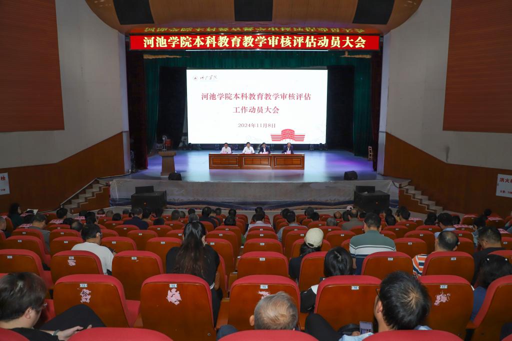 11月8日,我校在艺术楼表演厅召开本科教育教学审核评估工作动员大会。学校党委书记韦安光作动员讲话,校长马少健主持会议。党委副书记韦文广、副校长贺卫国出席会议,全体中层干部、职能部门科室负责人,二级学院办公室主任、团委书记、专业负责人、教研室主任、教务(教学)秘书、教师代表等参加会议。