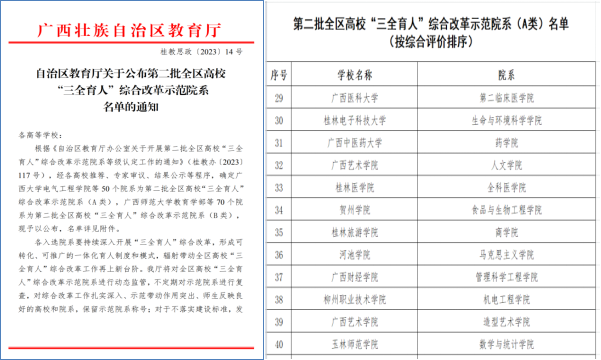 (四)“三全育人”取得新突破。2023年马院被确定为第二批全区高校“三全育人”综合改革A类示范院系。