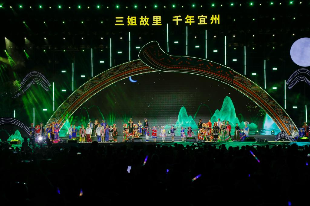 学生参加广西宜州第十五届刘三姐文化旅游节开幕式文艺演出