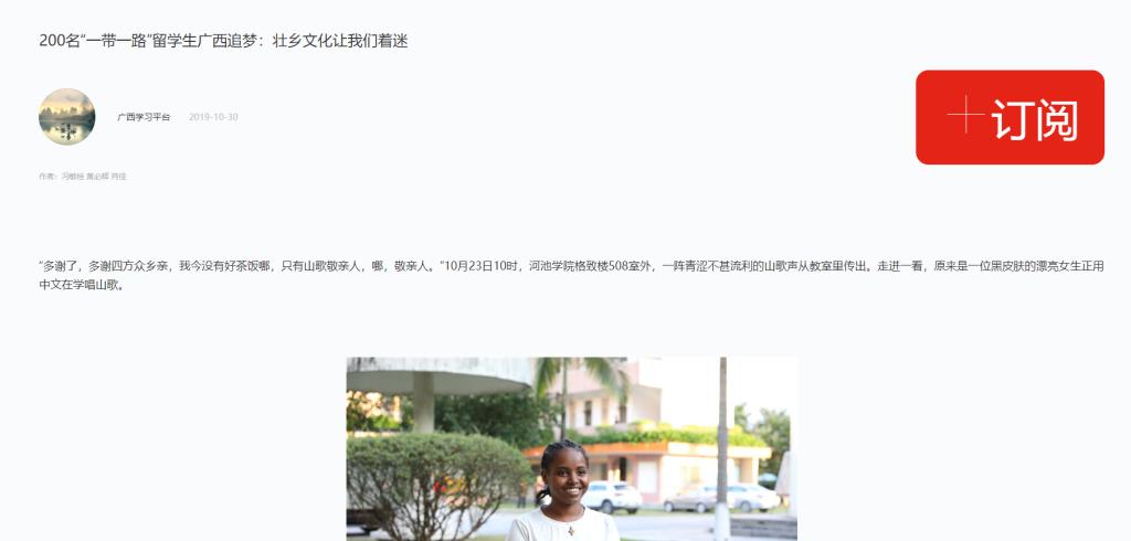 10-302019【学习强国—广西学习平台】200名“一带一路”留学生广西追梦:壮乡文化让我们着迷广西学习平台:https://article.xuexi.cn/articles/index.html?art_id=9531253082811629838&study_style_id=feeds_default&source=share&share_to=wx_singl