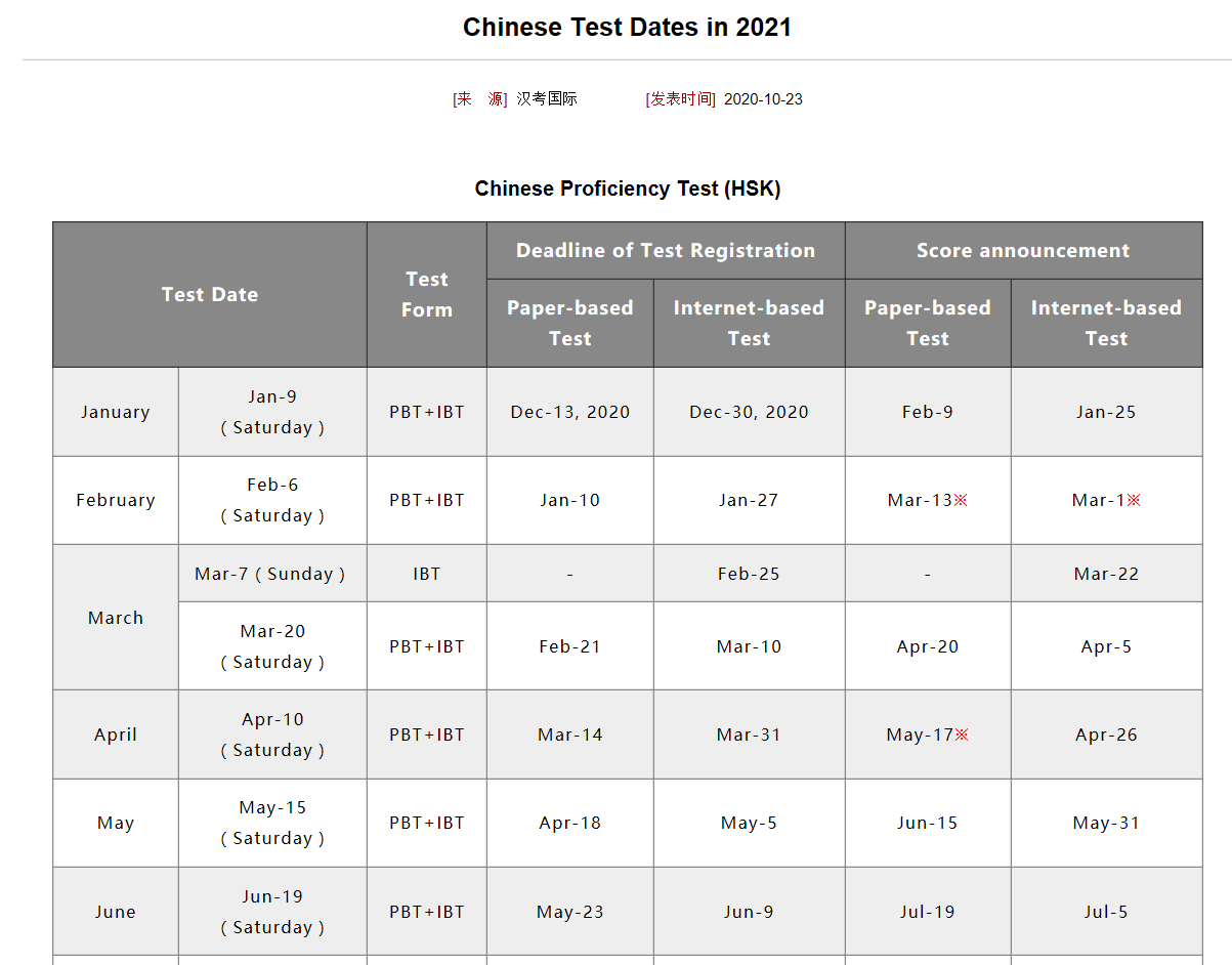 Chinese Test Dates in 2021Apr 13, 15:53