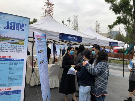 在招聘会现场,人事处工作人员和各学院领导主动向应聘者发放人才引进宣传手册,积极宣传我校人才引进政策,详细介绍我校各学科专业发展情况和人才培养特色,认真解答应聘人员有关人才引进、福利待遇、社会保险等相关政策问题。