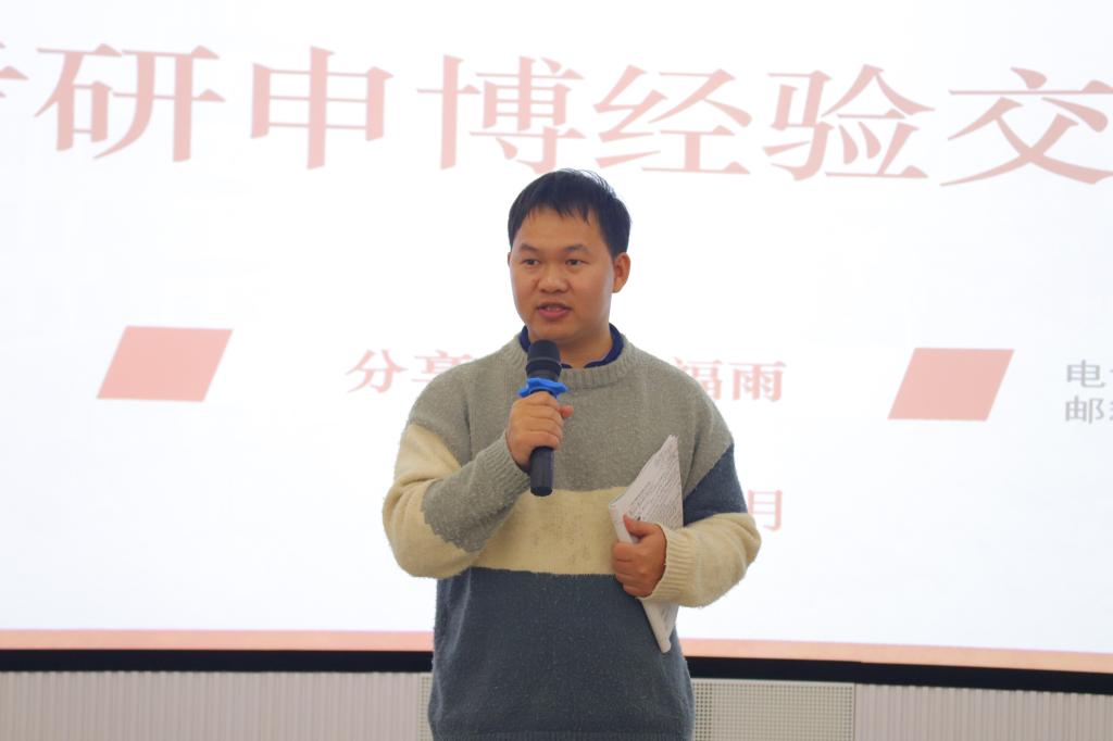 谈及考研经验,覃福雨娓娓道来。他就明确目标、考试内容、复习方法、网络经验甄别、压力调适、心态调整及复试准备等方面,对备考全过程进行了细致剖析,令在场备考学子深受启发。如今,已实现硕博梦想并持续前行的他,鼓励在场同学务必坚定目标、不言放弃——凡意志坚定、坚持到底者,最终都成功“上岸”。
