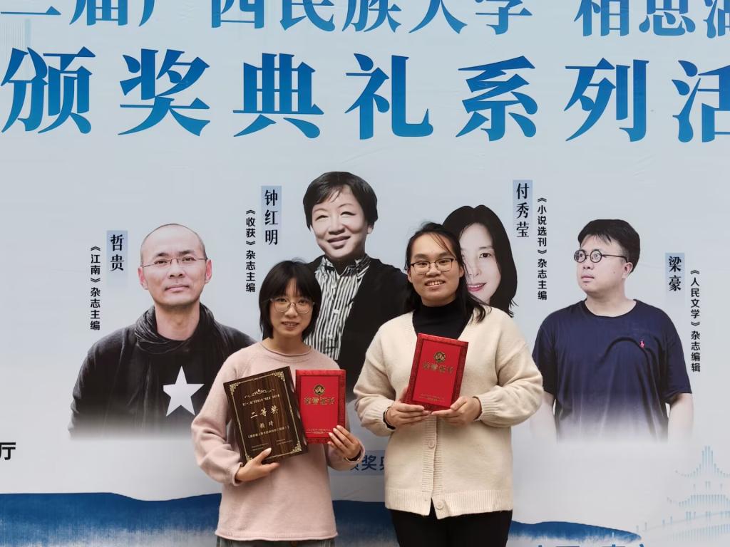 11月2日上午,第二十二届广西民族大学“相思湖”文学大赛颁奖典礼在广西民族大学相思湖校区文化研习基地举行。第二十二届“相思湖”文学大赛经半年征集,累计收到稿件3000余篇(份),经过四轮评审后,最终产生一等奖2篇,二等奖6篇,三等奖15篇和优秀奖20篇,共计43篇获奖作品。