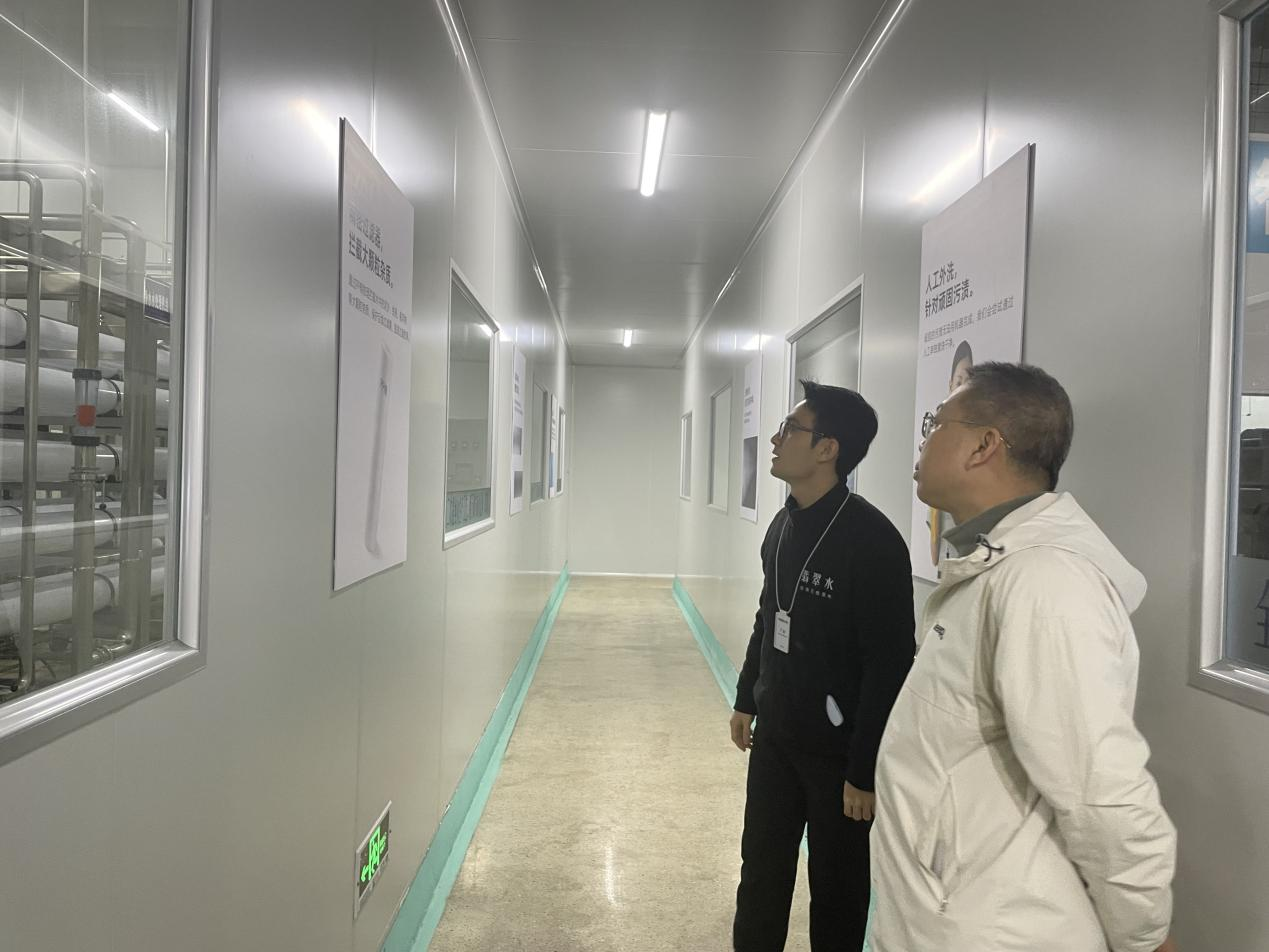 在公司的系统安排下,师生们依次参观了企业的办公区、仓储区与生产区。在办公区域,师生们通过企业宣传片与管理人员的讲解,深入了解了悦缤纷公司的发展历程、企业文化与组织管理架构,感受到企业严谨有序的办公环境与团队协作氛围;随后,师生们走进标准化仓储区。规范有序的原料与成品分区、高效的物流调度流程,让同学们对供应链管理、库存控制等课堂理论有了具象化的认知;进入核心生产区,在严格遵守卫生规范的前提下,师生们透过参观通道,近距离观摩了从原料预处理、自动化生产、无菌灌装到产品包装的全过程。企业质量负责人详细介绍了生产各环节的质量控制标准与食品安全管理体系,使“质量安全”从抽象概念转化为同学们眼中一道道严密的工序与一次次精准的检测。