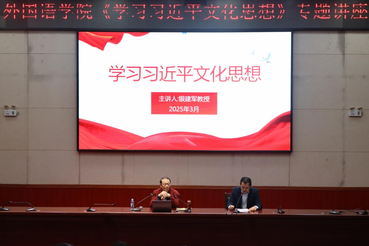 2025年3月22日上午,银建军教授在弘毅楼1-205为我院学生开展学习习近平文化思想专题讲座,讲座由学院专职组织员李凤主持,我院学生党员、入党积极分子和学生干部参加学习。