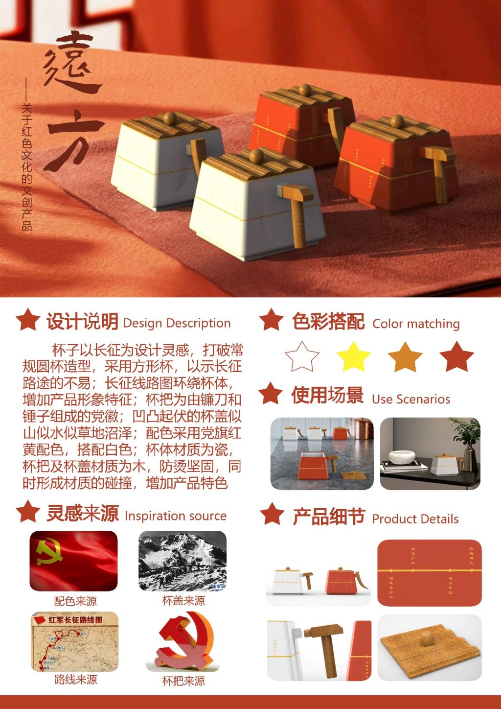 在课程思政建设大背景下,注重产品设计专业应用型人才培养,在文化创意设计课程中提炼红色文化的核心价值观和理念,引导学生树立正确的价值观和职业道德。通过设计实践,增强学生的文化自信和爱国情怀,提高设计作品的内涵和品质,提升学生的文化素养和职业能力,培养出具备社会主义核心价值观的产品设计专业人才。