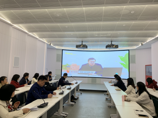 2022年3月28日下午,外国语学院(国际教育学院)在实训楼多功能厅召开党委理论中心组学习扩大会议,学院党委覃春华主持并讲话,全体教职工党员参加会议。会议的主题为贯彻“两个确立”,做到“两个维护”。