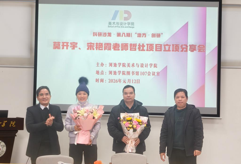 1月12日,为推进哲学社会科学研究项目的申报工作,进一步增强学院中青年教师的科研意识,美术与设计学院在图书馆107会议室举行哲学社会科学研究项目立项经验分享会。学院分管科研工作副院长韦景耀主持会议,学校科技处副处长欧造杰应邀出席,学院各专业青年教师积极参与。