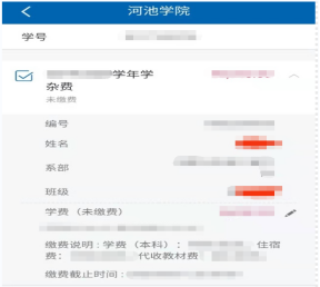 (2)输入学号、姓名进入下一页面,点击缴费,即可完成缴费。