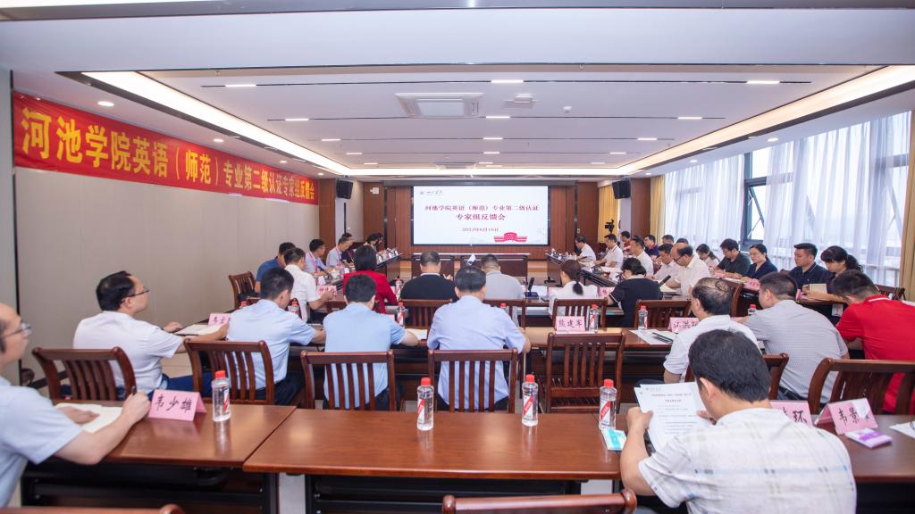 2023年6月16日,我校英语(师范)专业第二级认证专家组反馈会在实训楼1410举行,以华东师范大学外语学院教授侯敏跃为组长的专家组成员,学校党委书记韦安光、校长苗剑等校领导出席会议。