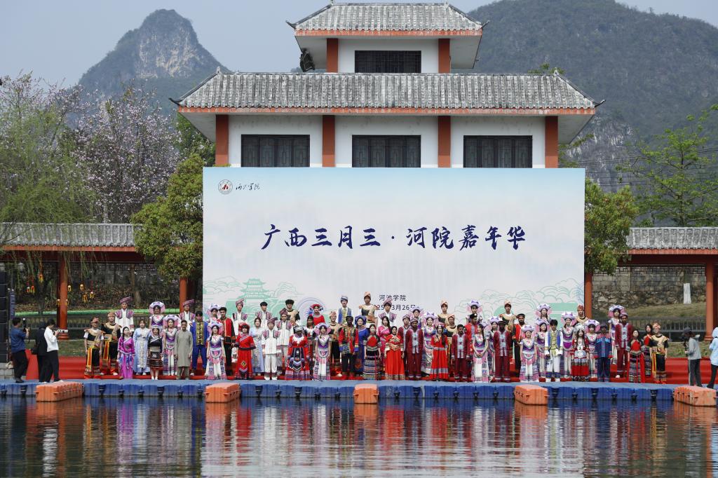 3月26日下午,我校在金盆捞月、逸夫楼广场、知行大道、滕渊路等地成功举办“广西三月三 河院嘉年华”系列活动。此次活动紧密围绕铸牢中华民族共同体意识这一主题,借助民俗展演、文化体验、体育竞技、趣味活动等多样形式,为全校师生打造了一场亮点纷呈的文化盛宴。