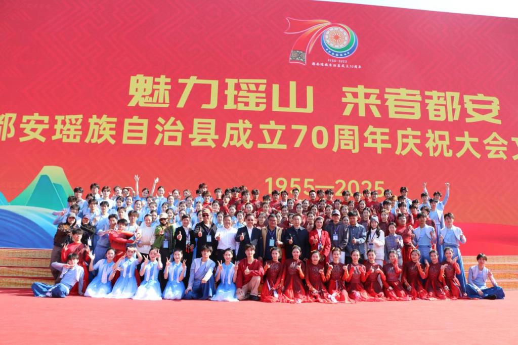 作为本次文艺展演的承办单位,我校高度重视、系统筹划,精心遴选出120名专业学生演员,参与4个篇章6个节目的呈现。节目内容紧扣县庆主题,巧妙融合情景歌舞、情景音画、情境表演等多种艺术形式,既生动展现都安成立70年来取得的辉煌成就,也深情诠释了瑶乡独特的民族风情与文化底蕴。同时,演员们以青春昂扬的姿态、专业精湛的演绎,彰显了学校“立德树人”的育人成果与青年学子的蓬勃朝气。
