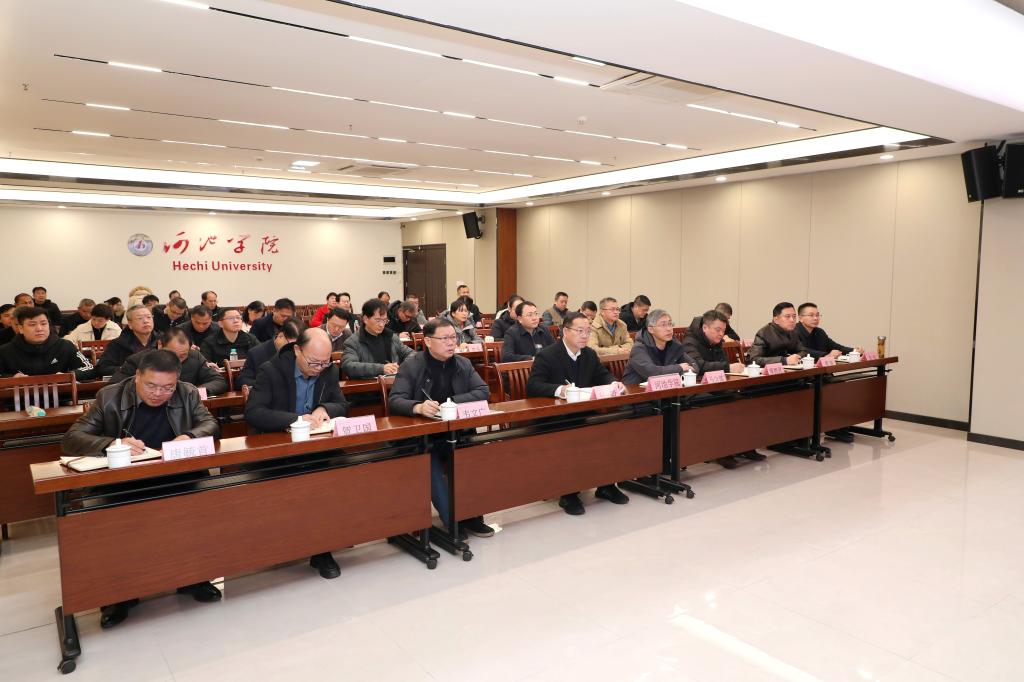 我校在致远楼1410会议室设分会场,学校党委书记甘毅、校长马少健以及全体校领导,各职能部门、二级学院主要负责人参加会议。