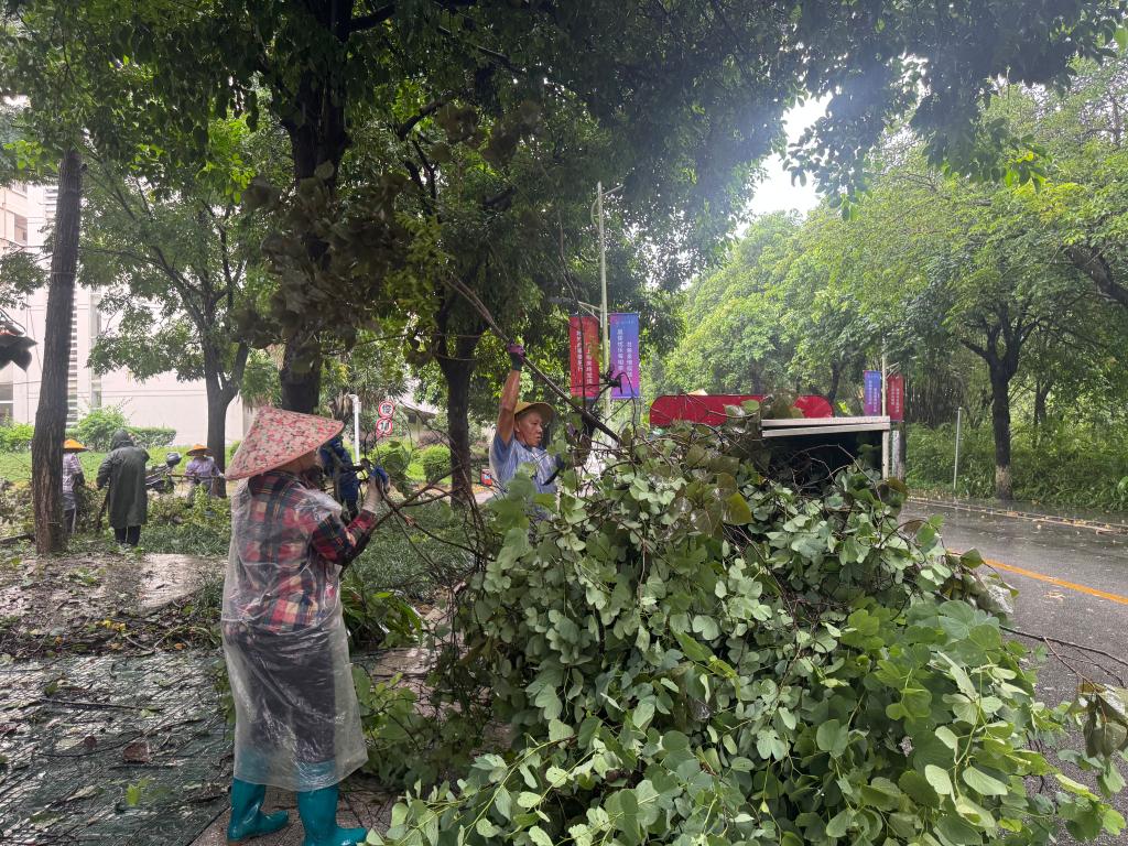 8月14日,强降雨突袭宜州城区,大风裹挟暴雨导致校内几条道路两侧树木倒伏、断枝横陈,部分路段通行受阻,对师生出行造成影响。