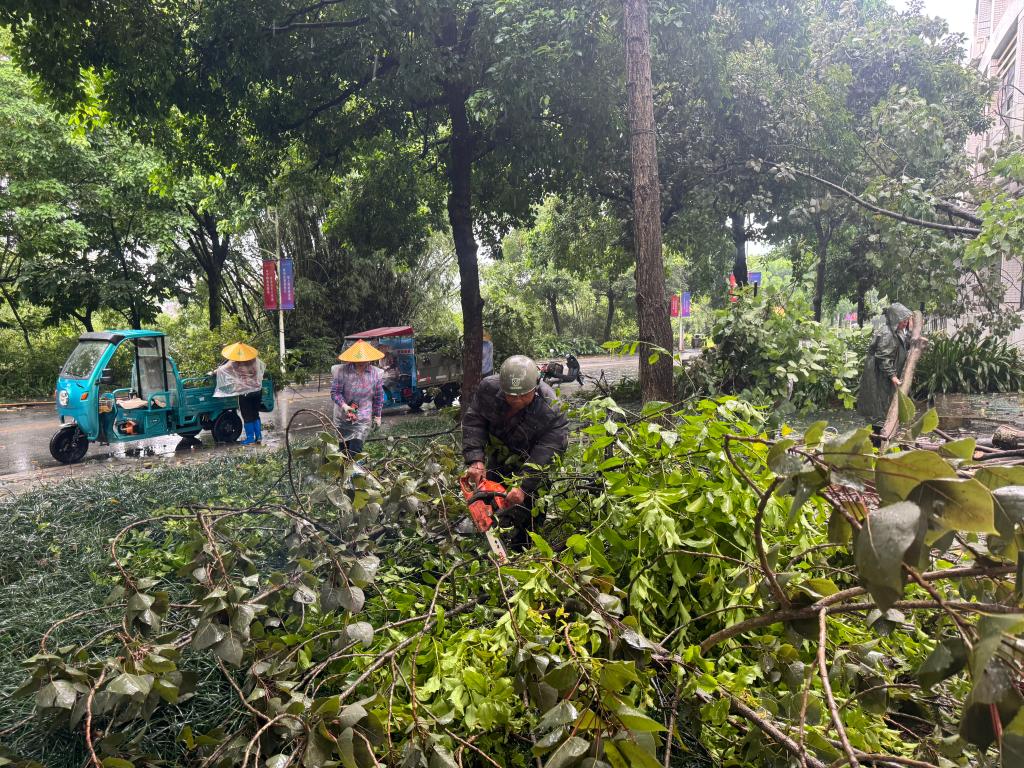 险情发生后,学校后勤管理处(基建处)立即启动应急处置预案,迅速集结工作人员,携带油锯、扫帚等工具赶赴现场开展清障作业。现场人员分工明确、协同配合,分别负责残枝修剪、断木搬运及碎叶清扫。经过2小时连续奋战,主教学楼、学生宿舍区等核心区域道路障碍物全部清除,交通恢复畅通。