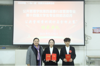 12月16日晚上,公共管理学院举行第四届暨行政管理专业第十四届大学生专业技能活动月之“公共管理案例设计与分析大赛”决赛,学院副院长肖海燕、行政管理教研室主任李荷英、社会工作教研室主任唐乐以及蔡霞、杨宏源等五位老师担任评委。